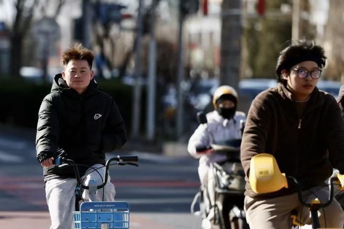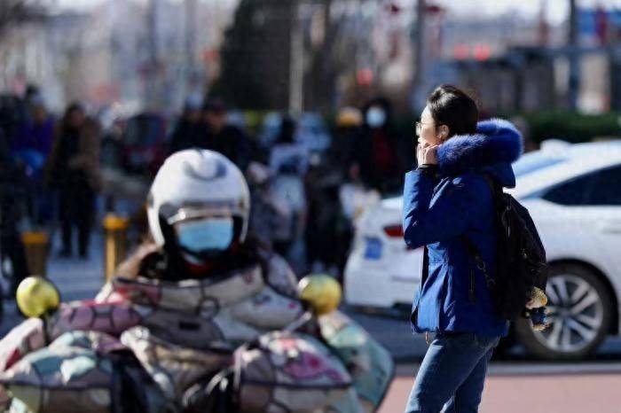 当日,市民风中出行。